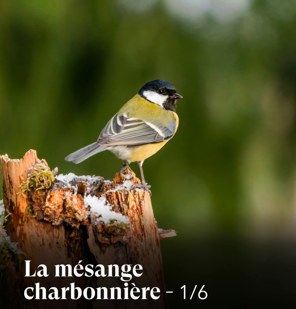 La mésange charbonnière est l’une des mésanges les plus communes en Europe. Elle mesure environ 14 cm de long pour un poids de 16 à 21 g. Son plumage est reconnaissable avec :