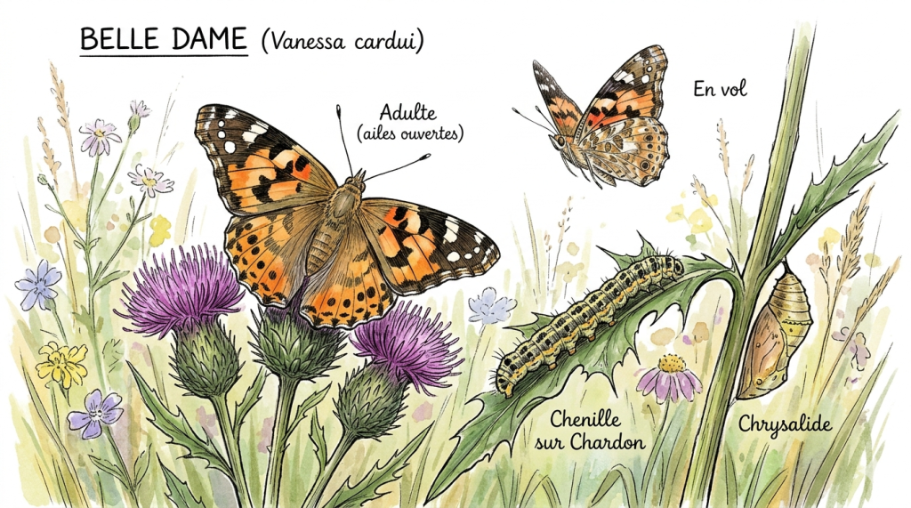 La Belle-Dame (Vanessa cardui), aussi appelée le « Vanesse des chardons », est sans doute le papillon le plus fascinant au monde. Ce n’est pas seulement un bel insecte, c’est un athlète de haut niveau capable de traverser des continents.