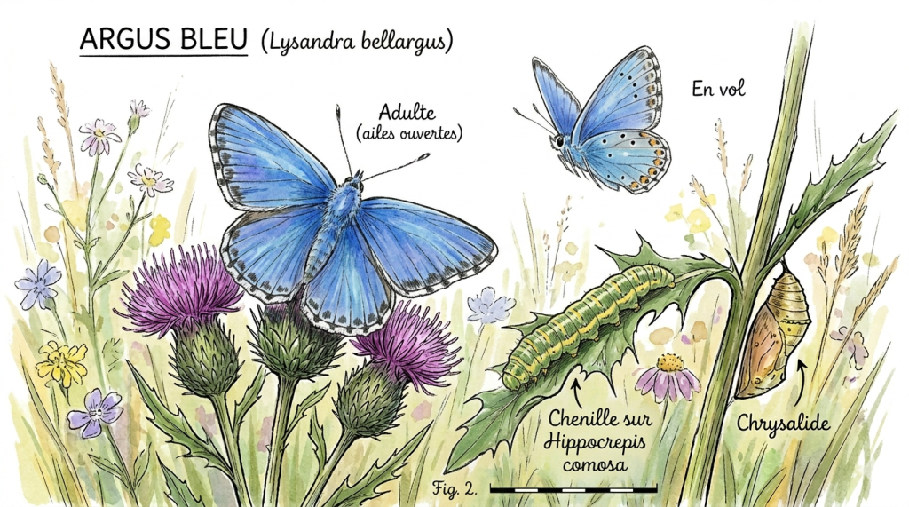 L’Argus bleu (Polyommatus icarus), aussi communément appelé l’Azuré de la Bugrane, est sans doute le papillon bleu le plus répandu en Europe. Si vous avez déjà vu un petit éclair azur survoler une prairie fleurie, il y a de fortes chances que ce soit lui.
